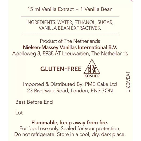 Nielsen Massey Original Vanilla Extract is crafted with care to bring the pure essence of vanilla to your kitchen. Made from hand-selected, premium-grade vanilla beans using a proprietary cold-extraction process, this extract preserves over 300 complex flavour notes that make every dish, from sweet treats to savoury, extraordinary. Thos extract is 100% natural and free from artificial flavours, colours and preservatives. Ideal for baking into cakes and cookies and savoury dishes in sauces and marinades. The vanilla beans are ethically sourced, supporting sustainable and fair practices in the vanilla-growing industry.